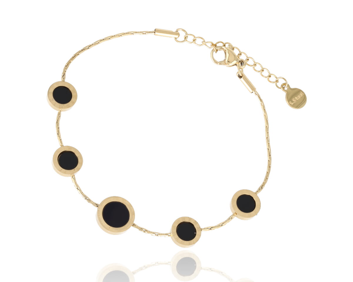 Bransoletka ozdobiona kilkoma guziczkami w postaci liczb rzymskich to wyjątkowy dodatek, który łączy w sobie elegancję i klasyczną estetykę.