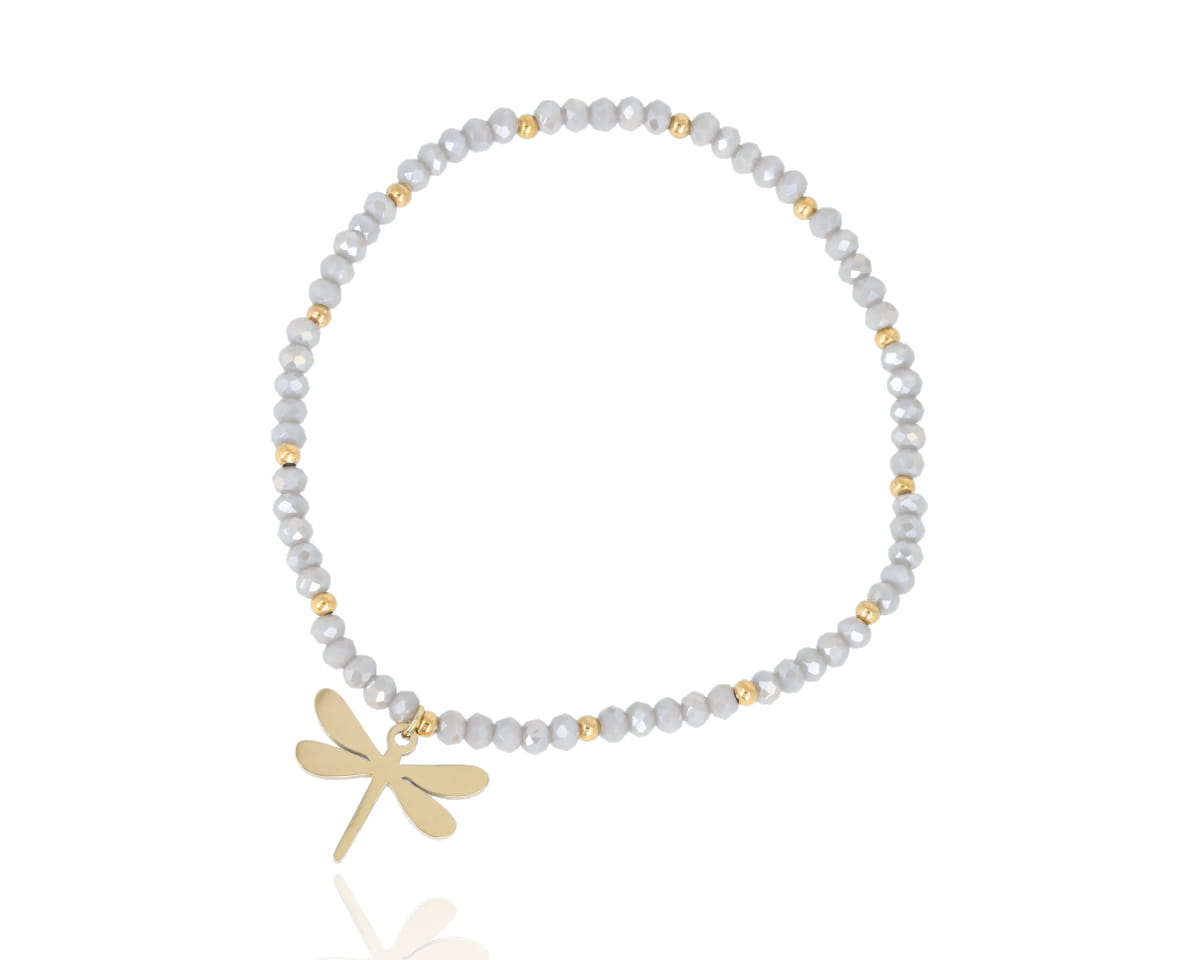 Delikatna bransoletka z koralikami. Zawieszka w kształcie ważki.